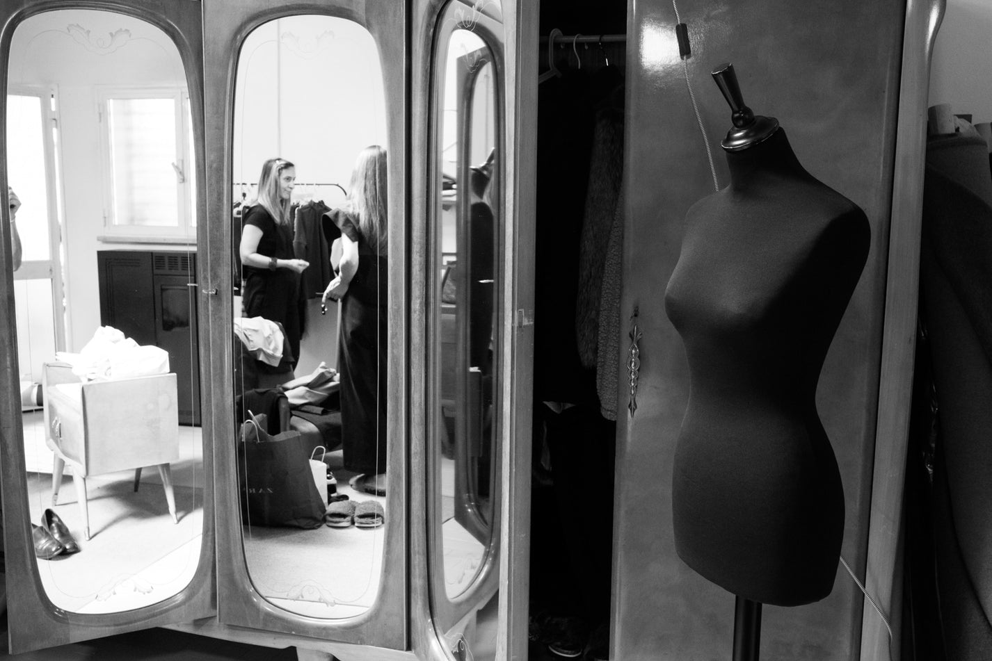 Attualmente l'edificio ospita l'atelier interno di MA VA’, il cuore pulsante dello studio di design. Qui, Marianna e Valentina lavorano per perfezionare la costruzione e la vestibilità dei capi attraverso la ricerca, la drappeggiatura su manichino, l'innovazione e la creazione di modelli in loco.