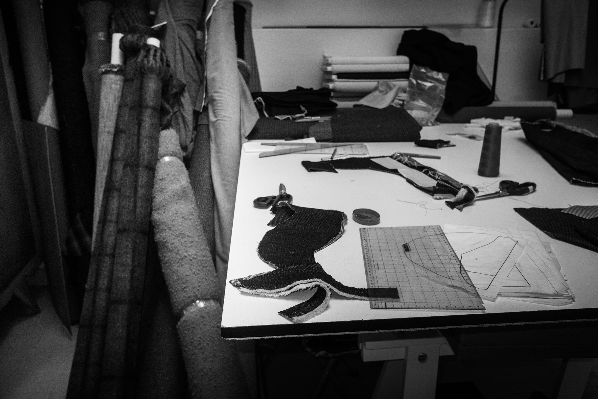 L'atelier contribuisce alla tradizione della sartoria classica e al tempo stesso sperimenta con queste tecniche consolidate nel tempo.
